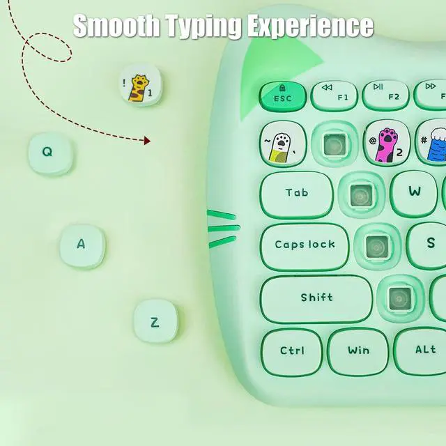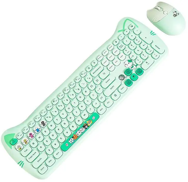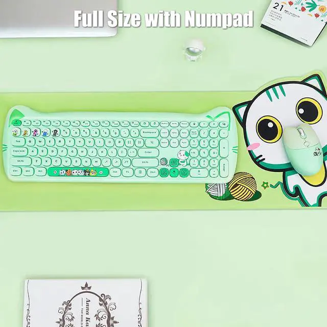 [Stable 2.4G Wireless Connection] - Advanced 2.4G wireless technology uses a single USB receiver for both keyboard and mouse, ensuring a stable, lag-free connection. Truly plug and play, no drivers needed, making setup effortless for home, office, or travel use. [Adorable Cat Theme Design] - Cat-ear keyboard with unique cat-print keycaps and matching mouse featuring cat whiskers. Fresh macaron colors create a fun and lively desktop look, blending style and function, perfect for students, professionals, and cat lovers alike. [Full-Size 110-Key Keyboard & Multimedia] - Includes numeric keypad and FN combination keys for rich multimedia functions.
