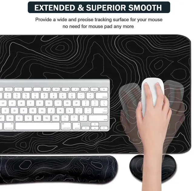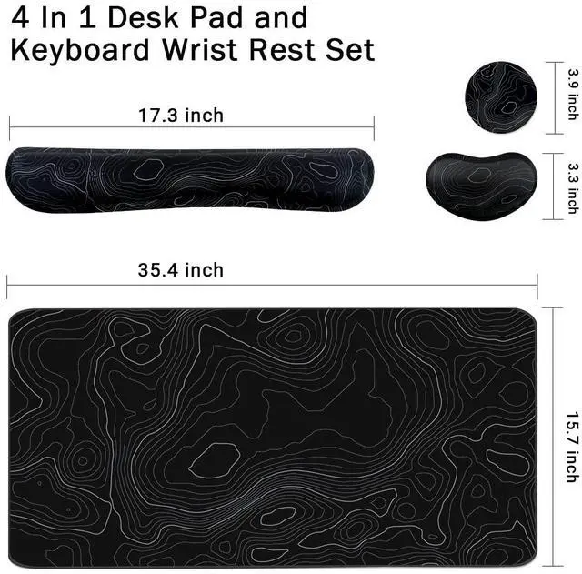 Topographic Mouse Pad Set, Extended Mouse Pad+Keyboard Wrist Rest, Memory Foam Ergonomic Easy Typing, 4Pcs (35.415.7 in) Desk Pad Set for Home Office Study Game-Topographic Contour