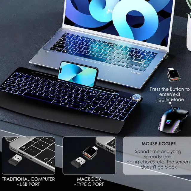 7 Colors Light Up Mouse & Mouse Jiggler 2 In 1 - If you working/gaming from home and tired of being tied down by your computer, or hankering for a more colorful and engaging atmosphere, this led wireless mouse with jiggler may be your choice. Just right for online courses, games, remote connections, etc. (One-click the jiggler button to turn on/off mouse jiggler mode) ^^ 5 Adjustable DPI and High-precision Sensor - This wireless mouse has 5 default DPI levels (800/1200/1600/2400/3200) to meet your with multiple purposes. Built-in high-speed sensor and 0.1 ms low-latency connection, you can easily adjust the movement speed with a smoother, more stable and more accurate office/gaming experience.