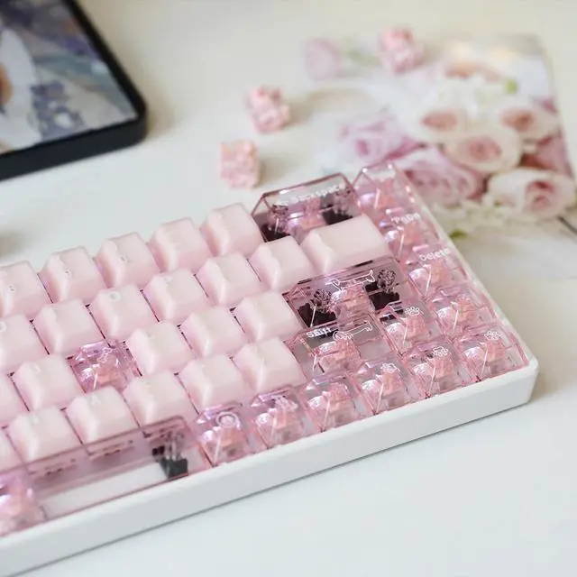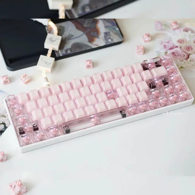 Keycaps Style: This set of keycaps consists of milky white translucent keycaps and pink transparent keycaps. The colours are soft and the design is unique, which can enhance the aesthetics of your keyboard.