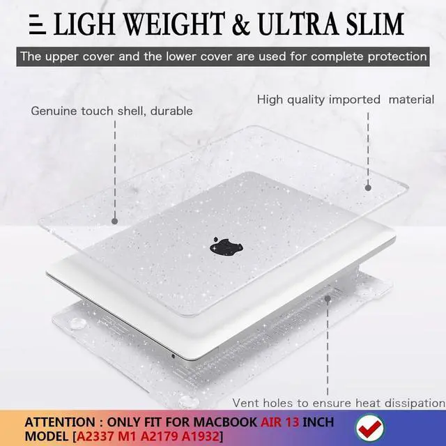 Only Compatible with MacBook Air 13 inch M1 Model A2337/ A2179/ A1932 Release 2018-2021. ^^ Please kindly check the model number "AXXXX" on the back of the laptop before purchase. ^^ NO Cut Out design, comprehensive protection for laptops.