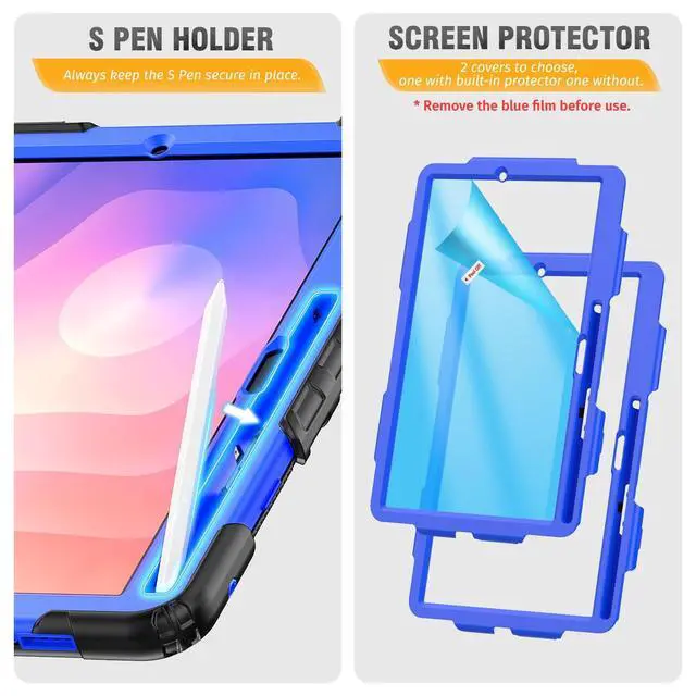 Number: SM-X730, SM-X736B Settings - About Tablets - Tablet Model). The Pen is NOT included! you can find install video on the page. ^^ Shockproof+Screen Protector This galaxy tab s11 case designed with durable anti shock material, built-in screen protector (with 2 front covers, one with built-in screen protector and one without, you can use your own protector if you want), Always keep your s11 tablet safe from shock, drop, scratch or accidental damages in daily use. ^^ Rotating Hand Strap & Stand -- This s11 tablet case provides a stable supports, with viewing/drawing/typing angles. You can hold the tablet safely by one hand and find the most comfortable viewing angle you need. also, the stand can be folded up when not in use. ^^ Multifunctional Carrying Strap -- Detachable and adjustable shoulder, both kids and adults can carry the s11 2025 tablet case around. Especially ideal for traveling! Because you can hanging it on the back of the seat during car rides like a TV. ^^ S Pen Holder & Precise Cut-outs -- Allow easy access to all ports and buttons, always keep the pen secure in place.