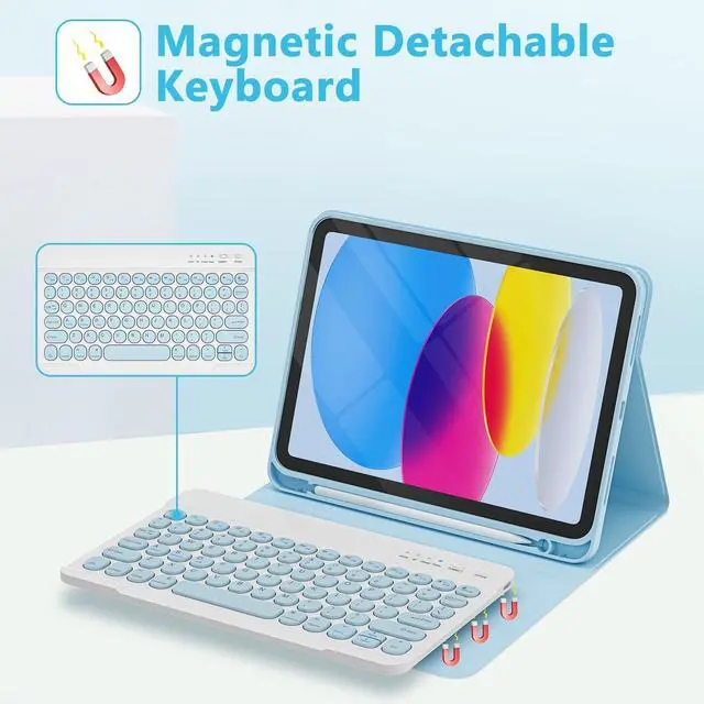Wireless keyboard: Detachable wireless keyboard with round keycap design, round and cute appearance, compact layout and convenient connection. The keyboard for ipad a16 11 inch is slim and portable, easy to carry and to put into a briefcase, handbag or backpack ^^