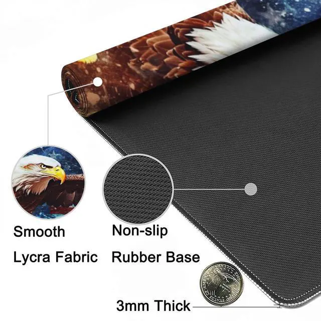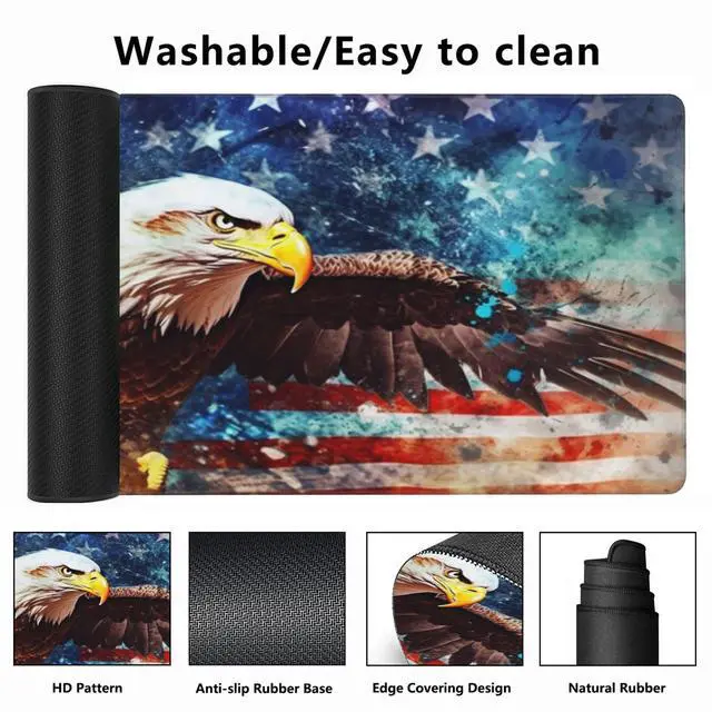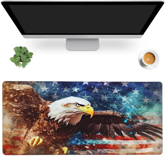 Craft With Edge Stitching To Prevent Fray, Deformation And Degumming ^^ Waterproof and Easy to CleanThe XL Gaming Mouse Pad With Waterproof Coating, Prevents Accidental Damage From Liquid Spillage Such As Water, Coffee, Juice. Ordinary Stains Can Be Wiped Cleanly With a Wet Towel, Easy To Clean Without Delaying Your Work Or Game ^^ Perfect Gift Idea Watercolor Bald Eagle Over American Flag Desk Mat, Personalized Pattern Design. Using Advanced Printing Technology, Keep The Colors Bright And Not Easy To Fade. It Is Not Only a Mouse Pad But Also a Decorative Pad For The Desktop.