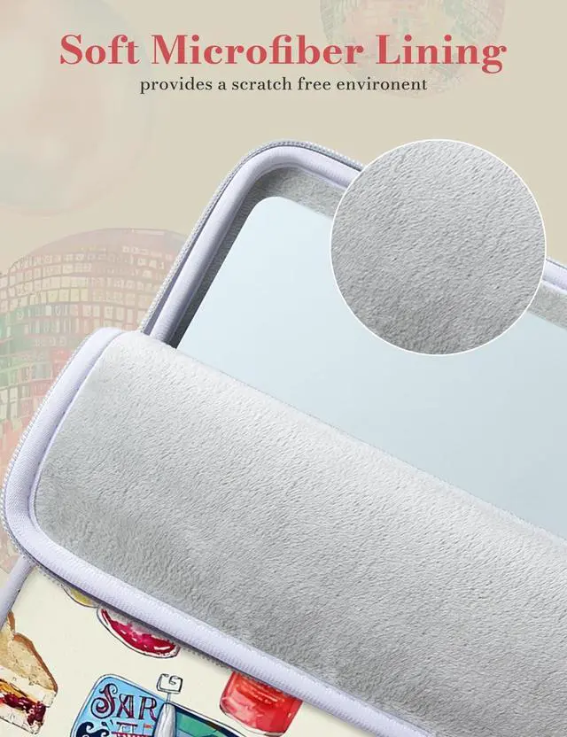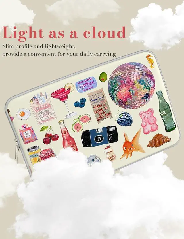 Style: Inspired by our collection of vintage sticker books, it skillfully blends elements such as playful bears, sweet cherries, swimming goldfish, and delicate wine glasses to create a colorful world full of storytelling and artistic flair. If you need a bright color to adorn your life, this cute 13 inch laptop case is your best choice! Also can be a present to your friend, child, colleague, classmate, et.