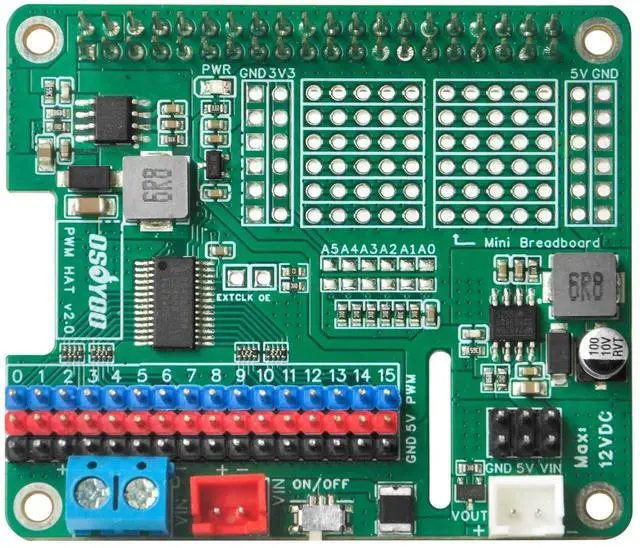 Description: Enhance your Raspberry Pi projects with this versatile I/O HAT, designed to provide both reliable power and precise motor control. Featuring battery regulator and adapter with power battery input voltage from 6V to 12V, this HAT ensures your Raspberry Pi stays powered up even on the go. The integrated PCA9685 chip offers 16 PWM channels, allowing you to control a wide range of motors, servos, and LEDs with ease. This HAT is perfect for robotics enthusiasts, makers, and hobbyists looking to create mobile and dynamic projects. Whether you're building a robot, an RC car, a drone, or any other Raspberry Pi-based project, this HAT provides the essential power and control capabilities you need. Its easy-to-install design ensures a hassle-free setup, and its compact form factor won't add unnecessary bulk to your project. The HAT is compatible with Raspberry Pi 3, 4, and 5, making it a versatile choice for a wide range of applications. To help you get started quickly and easily, we provide comprehensive online tutorials. These tutorials cover everything from basic setup to advanced PWM programming, ensuring you can harness the full potential of this HAT.