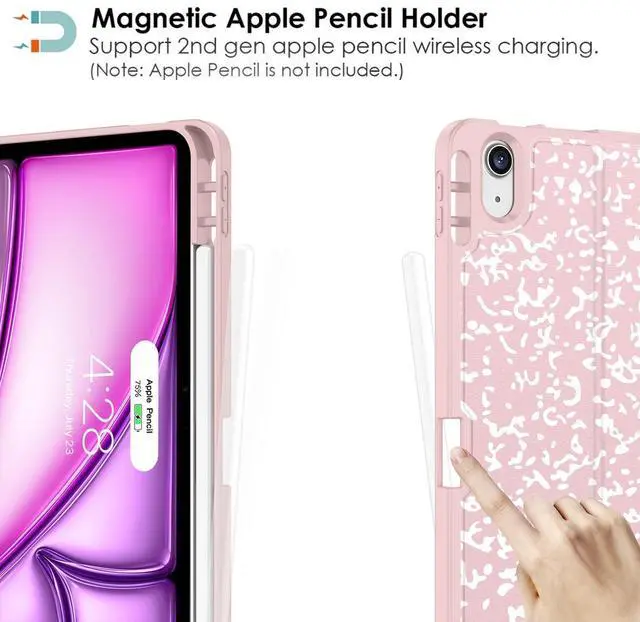 • FUNCTION:Built-in pencil holder makes this ipad air case 11 inch (M2,M3)/5th generation/4th generation convenient to carry your Apple Pencil while supporting 2nd gen pencil wireless charging. Support auto sleep/wake feature.