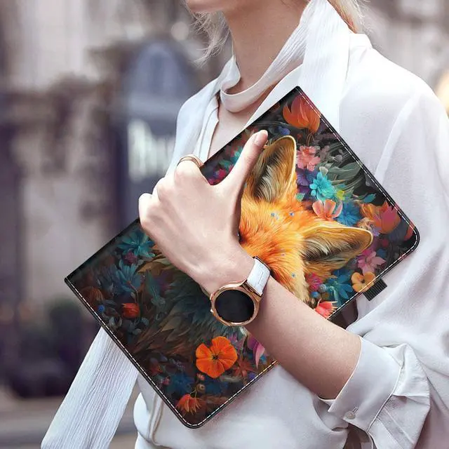 Case for All-New Fire HD 10 Tablet and Fire HD 10 Plus (13th/11th Generation 2023/2021 Release) Auto Sleep/Wake Multi-Angle Viewing Slim Folio Stand Cover, Fox with Flowers