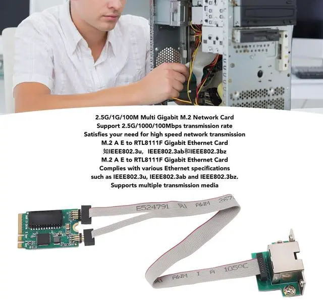SUPPORT 2.5G /1000/100MBPS: The M. 2 A E 2.5G ethernet adapter supports 2.5G /1000/100Mbps rate to meet your needs for high speed network. ^^ STABLE AND M. 2 A E to RTL8111F gigabit ethernet card supports hardware and hardware CRC functions to ensure error correction and checking of data.