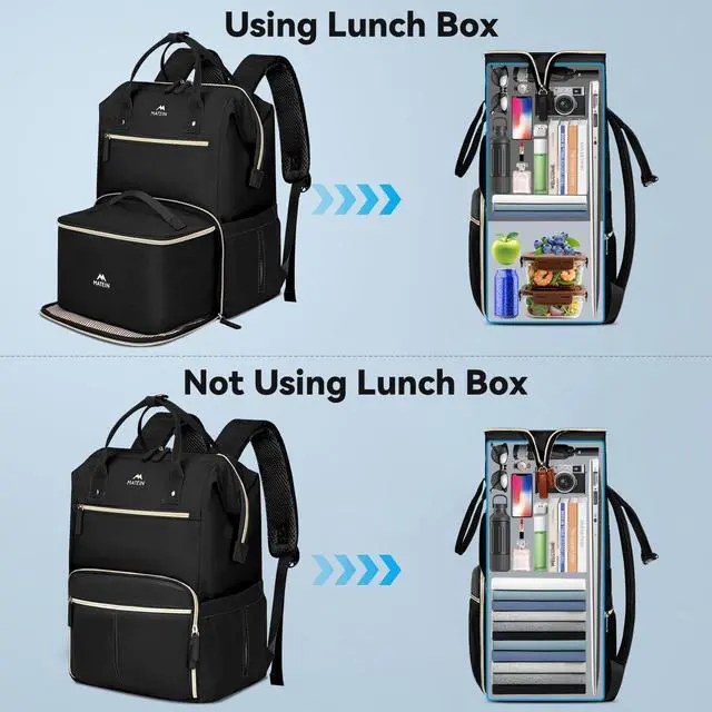 Wide Opening & Multiple Pockets: Work bag with lunch compartment features a dedicated side pocket for easy access to napkins! The wide-opening design of the main compartment ensures effortless packaging and unpacking. Equipped with 1 laptop sleeve compartment for 13- 17.3 inch laptop, 1 front pockets for fast retrieval, back anti thef pocket for mobile phone & wallet. The multi pocket design makes the backpack for teachers a great way for commuters to organize their work and daily essentials ^^