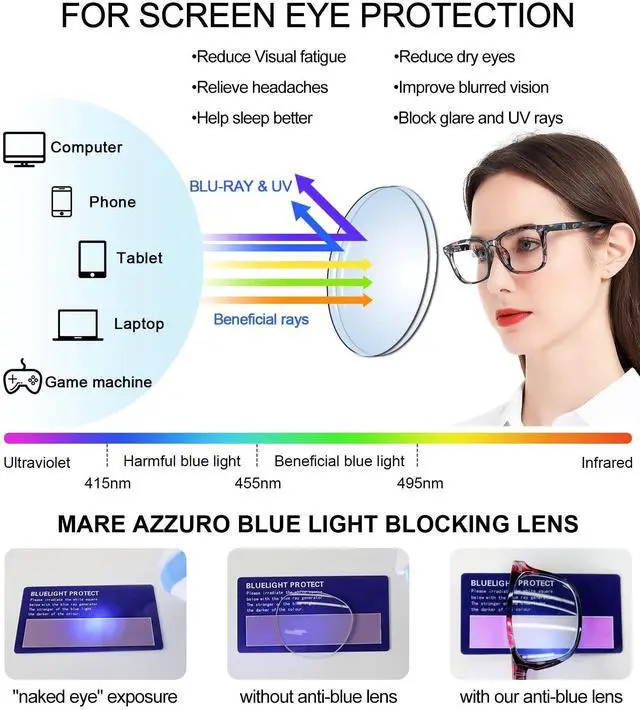 Blue light blocking reading glasses: A-class computer reading glasses 2.25 women can cut 100% of harmful blue light, glare and UV400. The Yellowish tinted lens can improve contrast, reduce chromatic aberrations, restore true colors. Relieving your eye strains and headache for reading, watching TV, gaming, using computer or mobile phone, to get a better sleep at night.