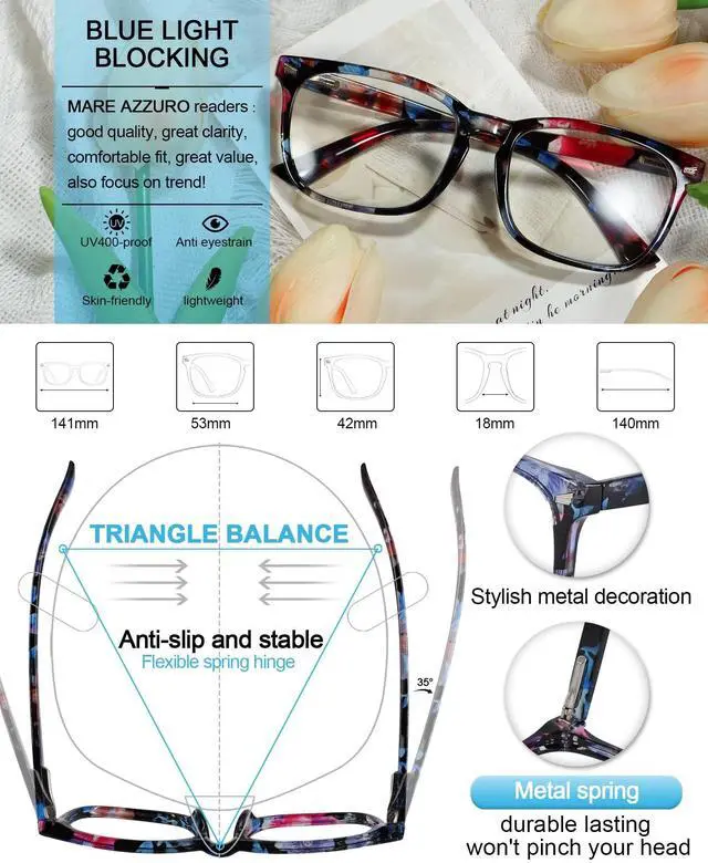 The ladies blue light blocking reading glasses 225 with funky square design is suitable for all face shape and makeup, and against the high energy blue light from digital screens (computer, phone, pad, TV, LED, etc. ). Designer readers with exquisite gifts, also has + 1.00 to + 6.00 accurate magnification to meet your daily needs. ^^