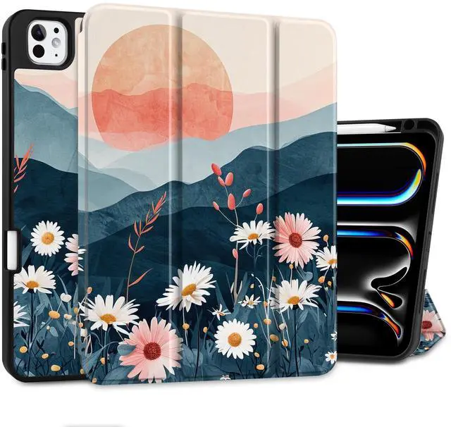 DONGKE Case for iPad Pro 11 inch (M5 2025 / M4 2024, 6th & 5th Generation) [Built-in Pencil Holder] Ultra Slim PU Leather Trifold Stand Cover with Soft TPU Back, Auto Wake/Sleep, Daisie