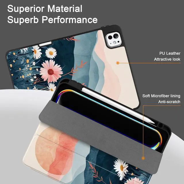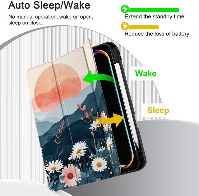 ^^ For Apple Pencil Charging Built-in Pencil holder and adapter slot, fully supports charging and pairing with Apple Pencil Pro and Pencil USB-C. Easily grab your Pencil or adapter whenever you need perfect for carrying both your iPad and Pencil together. (Case only, other accessories not included. ) ^^ Professional Design Inner honeycomb grid air-cushion pattern helps dissipate heat efficiently, improving shock absorption and extending iPad lifespan. The multi-layer painting process gives a sleek, refined look that resists fingerprints and daily wear. ^^ Convenient Function Features sensitive Auto Wake/Sleep function for power saving.