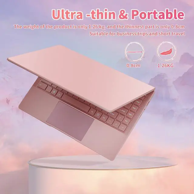 Stylishly Portable & Ultra Thin Design: Experience unparalleled elegance and mobility with this stunning rose gold laptop. Weighing just 1.25 kg ( 2.76 lbs) and boasting an 8mm ultra-slim profile, it's your perfect companion for the coffee shop, campus, or cross-country travel. The sleek, lightweight design slips effortlessly into any bag, while the 180 hinge allows you to share your screen comfortably with friends or colleagues, adapting to any situation. ^^ Ready to Use Right Out of