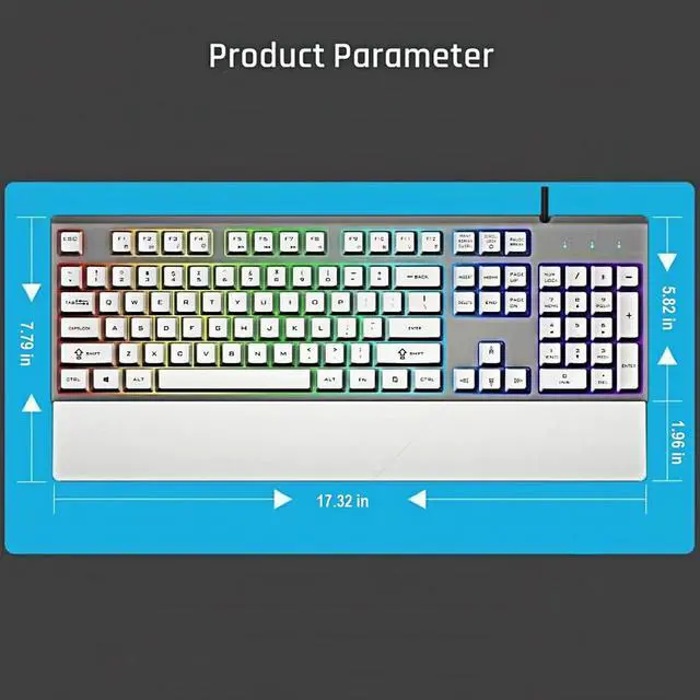 Wired Rainbow LED Gaming Keyboard, 104 Keys Light Up Mechanical Feeling Computer Keyboard With Palm Rest for Windows, Laptop, PC Gamers Office Device, Travel, Easy to Carry on Business Trip,Woking(White)