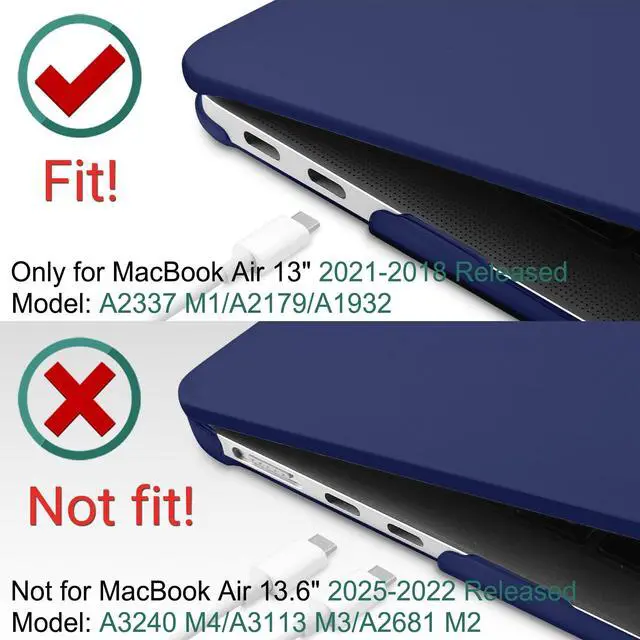 • Compatibility: Only design for 2021 2020 2019 2018 MacBook Air-13 inch with Retina Display and Touch ID (Models M1 A2337, A2179, A1932). Not compatible with MacBook Air 13.6-inch (M4/M3/M2 chip, 2025-2022). Check your device model before purchasing.
