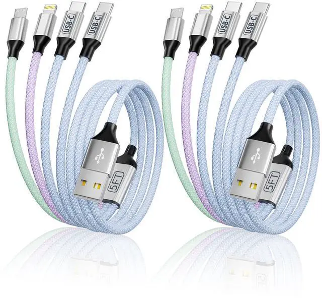 All Devices: Get our 2packs 5FT multi phone charger cord, you will get 8 usb cables: 4 usb a to usb c cable, 2 usb a to lightning cable, 2 usb a to micro usb charging cable, compatible with all iPhone 17 Air/16 Pro Max/16/15/14/13/12/11/SE/Xs Max/ Xs/Xr/X/8/7/6/5 Series, iPad Air/Pro, Pod, Galaxy S25/S24/S23 /S22/S21/S20 Series, Note 7 8 9 10 20, Google Pixel, PS4/5, portable fans, LED cabinet lights, headphones and most other devices ^^ All in One Multiple