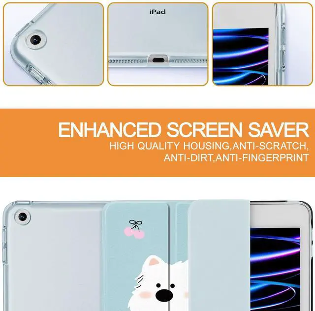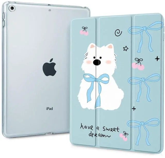 May Chen Compatible with iPad 10.2 Inch 2021/2020/2019 Case, for iPad 9th/8th/7th Generation Case, Slim Stand Cover with Hard Translucent Back Shell, Auto Wake/Sleep, Blue Bows Dog