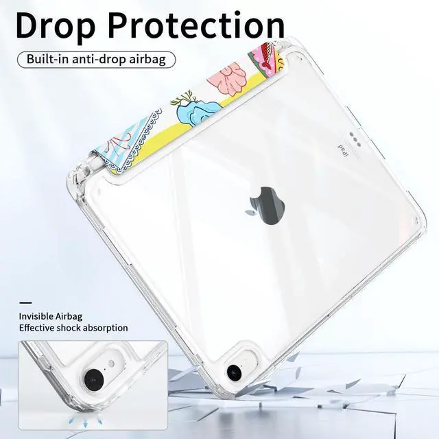 Stand: 5-angles viewing stand for ipad air, providing the perfect view for typing, watching movies, or drawing. Clear Transparent Cover for ipad air: Shockproof, anti-yellowing, hard back cover. The pattern of ipad air 11 case is suitable for students, kids, girl, women, boy