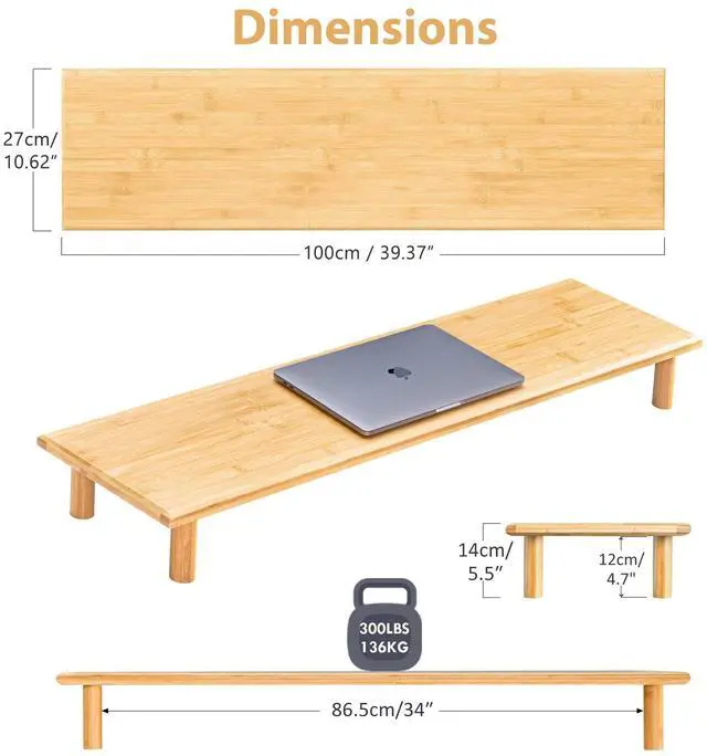 Quick Assembly: Assembles in just one minute without tools or glue; measures 39.37 x 10.62 x 5.5 inches and supports up to a 75-inch screen or two 27-inch screens ^^