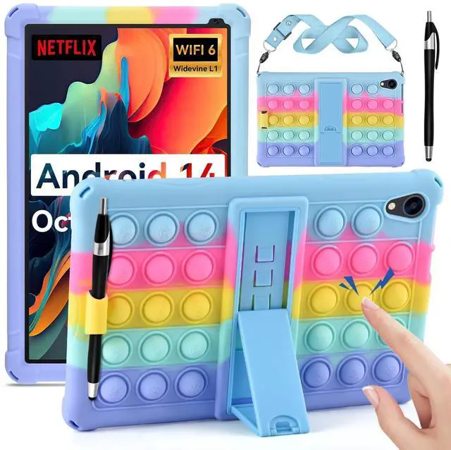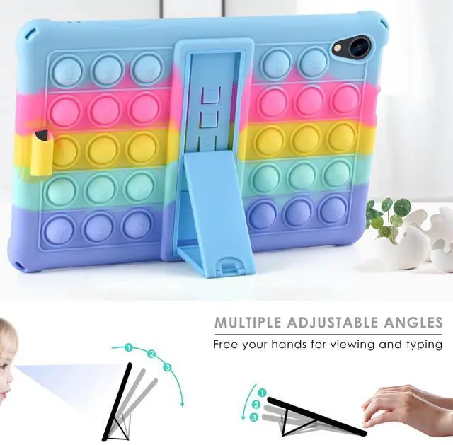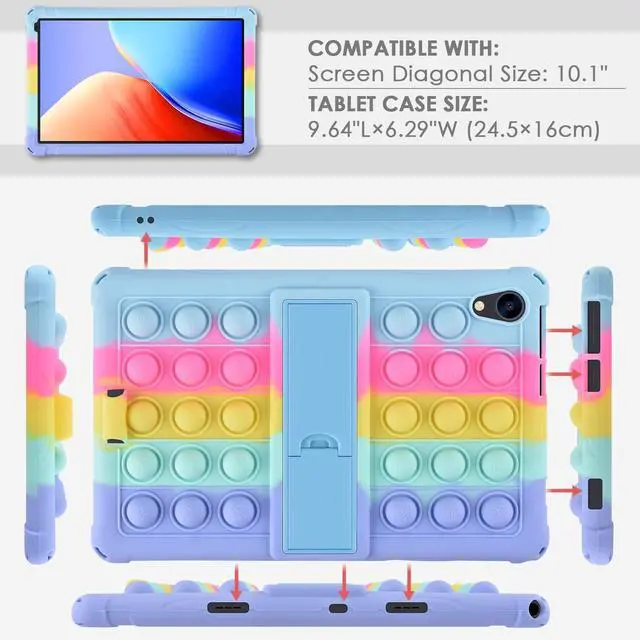 INCH SILICONE CASE: For URAO 10.1" tablet case is made of high quality silicone. The raised edge protects the tablet camera perfectly. Thickened corners are designed to protect the tablet from damage due to drops or bumps ^^ WITH SHOULDER STRAP AND FOLDED STAND: URAO C107 10.1 inch tablet cover allows you to adjust different angles, convenient to typing and watching videos. The length of the shoulder strap can be adjusted, making it convenient for you to carry the tablet. Built-in a pen holder can avoid stylus pen drop.