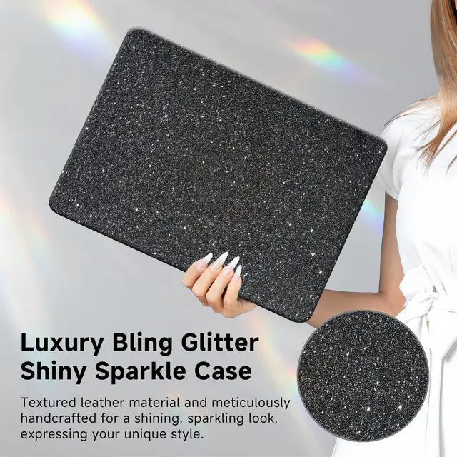 CompatibilityThis glitter case for MacBook Pro 16 inch 2024 2023 2022 2021 Release M4 M3 M2 M1 Pro/Max with Liquid Retina XDR Display & Touch ID (models: A3403 A3186 A2991 A2780 & A2485). Not Compatible with Any Other Laptops. Please check the model number "Axxxx" on the back of the Macbook before purchasingThis case is ONLY compatible with MacBook Pro 16 inch 2024 2023 2022 2021 Release M4 M3 M2 M1 Pro/Max with Liquid Retina XDR Display & Touch ID (models: A3403 A3186 A2991 A2780 & A2485). Not Compatible with Any Other Laptops. Please check the model number "Axxxx" on the back of the Macbook before purchasing ^^ Protective CoverCut Out design, Logo Shines through the case. MacBook Pro 16 case is made of high-quality pu leather & plastic material, High-quality PC plastic with high impact strength, wide temperature range, and good dimensional stability(You don't have to worry about the case deforming due to high temperatures). ^^ 100% Compatible with MacBook Pro 16 Two pieces design, case is easy to assemble. There are many air vents at the bottom side which is good for heat dissipation while using computer. This macbook Pro hard shell case allows full access to all ports, fully open over 135 degrees ^^ Keyboard coverMade with high transparency and engineering grade TPU material, ultra thin to 0.12 mm, and won't hurt the screen and made it easier for typing. And high transparency film allows backlit keys to clearly shine through, and the keyboard cover is completely washable and reusable, easy to apply and remove for cleaning or disinfecting ^^ Package Includes1 plastic hard top case, 1 matte black bottom case, 1 keyboard cover.