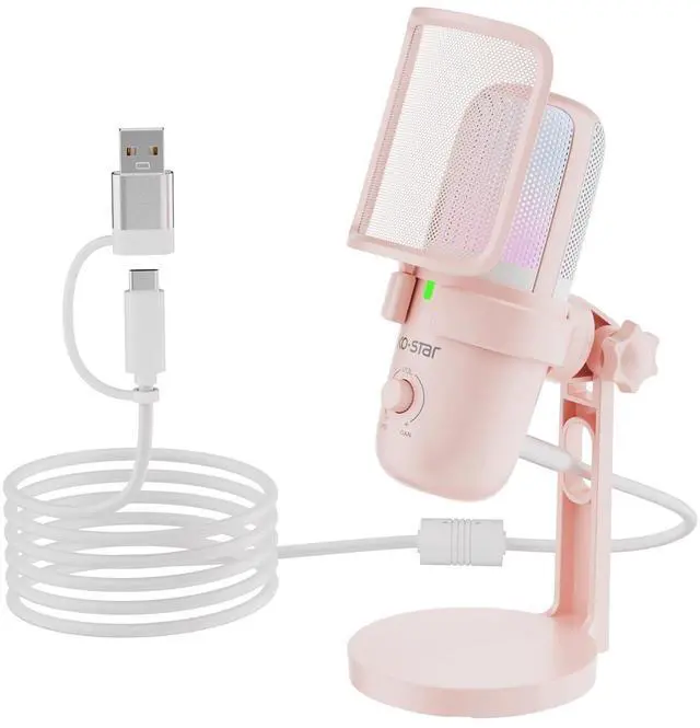 Colorful RGB lighting: The KO-STAR gaming computer microphone is equipped with RGB breathing LED lights, which can automatically change into multiple colors to create an ideal carnival atmosphere and make your gaming or live streaming effects more eye-catching. It can also visually display the working status of the microphone.