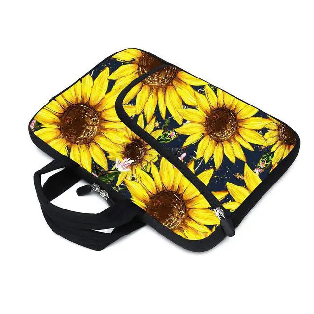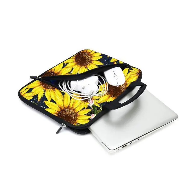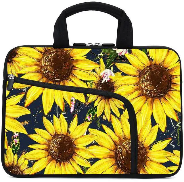 XMBFZ Laptop Sleeves 14 15 15.4 15.6 Chromebook Case Notebook Sleeve PC Messenger Bag Tablet Case Neoprene Handle Sleeve for Men Women, Two Pockets (Sunflowers)