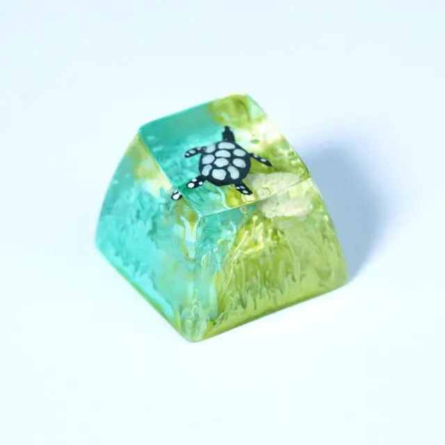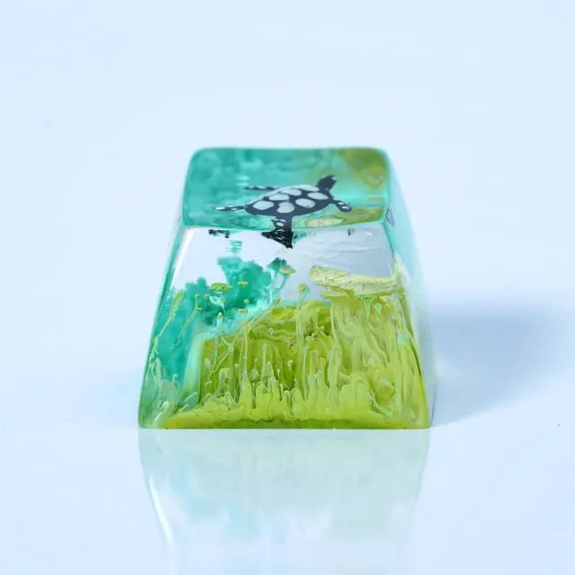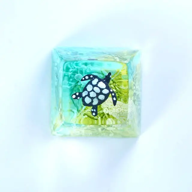 Sea Turtle Artisan Keycap Teal and Green Ocean R1 SA Profile Custom Sea Creatures Keycaps 1U ESC Handmade Gaming Resin Key Cap Cherry MX Switch Compatible Mechanical Keyboard Turtle Lover Gift
