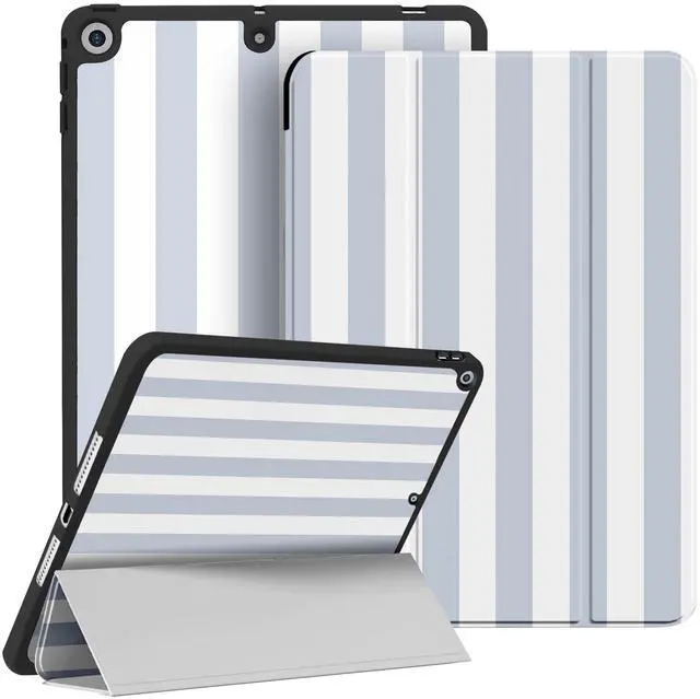 HSMYDBCYC Case for iPad 9th/ 8th/ 7th Generation 10.2 inch 2021/2020/ 2019Fashionable Pattern Case with Pencil Holder Trifold Smart Stand Cover (Striped Blue)