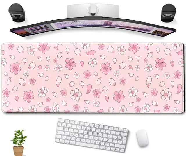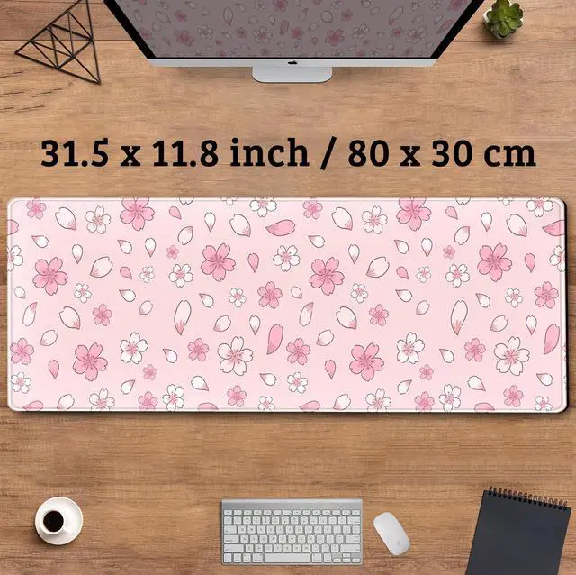 • Lovely japanese cherry blossom pink desk mat, Japan sakura mousepad, Lofi deskmat, Aesthetic large XL computer keyboard and mouse Pad 31.5x11.8 in (80x30 cm), Thicknesses 3mm. These extra large mouse pads are the perfect gift for gamers. The Best Gamer Gift.