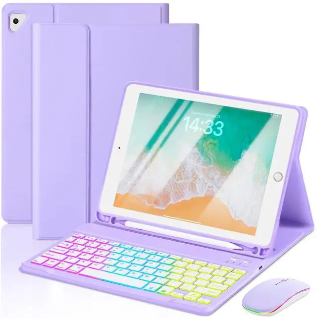 iPad Pro 9.7 (models: A1673/A1674/A1675). Before purchasing, please check the model number of "AXXXX" on the back of iPad. "Axxx". (This product does not include: tablet, pencil) ^^ Rainbow Backlight, Multi-Function KeyboardSuitable for iPad RGB rainbow backlight Bluetooth keyboard, 7 adjustable backlight colors, breathing light backlight mode can be automatically switched. The backlit keyboard can be used in the dark, providing a comfortable typing experience. Rich function shortcut keys allow you to use iPad more efficiently & comfortably, such as editing documents, navigating applications, creating presentations. ^^ Precise Hole Position, Honeycomb Design The mold for iPad case is made based on the real iPad, and the precise cutouts can make full use of all functions, and provide perfect protection and convenience for daily use. The soft TPU inner shell adopts a honeycomb design, which is beneficial to the heat dissipation of the tablet and improves the performance of the tablet. ^^ Multi-Angle Adjustment, Detachable KeyboardThe protective case has 2 anti-slip grooves, supporting 110 and 120 angles, allowing you to use the tablet at a comfortable tilt angle and enjoy reading, drawing, watching, chatting, etc. The detachable Bluetooth keyboard can be used alone and can be removed when not in use, making it very convenient to carry.