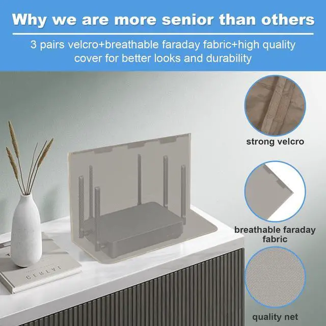 High quality substance The radiation resistant WiFi cover is made of copper/nickel/polyester fiber certified to provide 99.999 % protection in the frequency range of 10KHz to 3GHz and still has over 99.6 % effectiveness at 5.6GH z. This fabric has good conductivity and shielding effect ^^ Large size The router housing size is 14 inche x 15.5 inche Our router's WiFi protective cover is larger in size which means it has higher tolerance for most routers with or without antennas ^^ Friendly design In fact the router cover does a good job in blocking, but it may have some impact on WiFi signals.