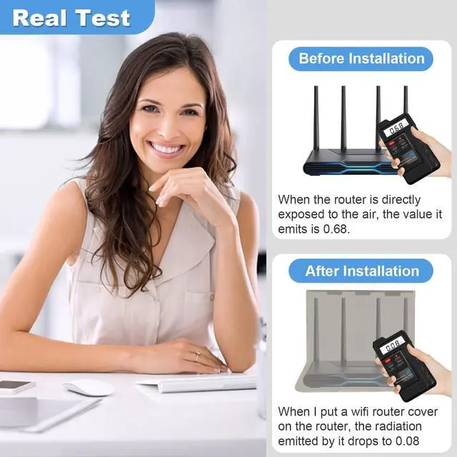 We suggest not completely wrapping the router, and only partially wrapping the router when using WiFi. When you sleep or don't need to use WiFi, we recommend fully wrapping the router. It is very easy to use and fully covers the router, especially the router antenna Then it can come into play Please note that cleaning the lid is not recommended ^^ More uses This WiFi protective cover can not only be used to cover routers but also as a Faraday bag It can also store mobile phones keys or bank cards like a Faraday bag Giving it to a friend is an attractive and noble idea ^^ Protectining from now How close are harmful sources to our bodies and how much radiation do we receive from now on.