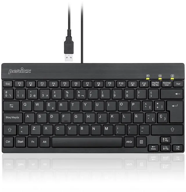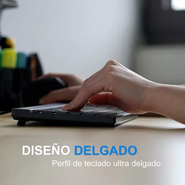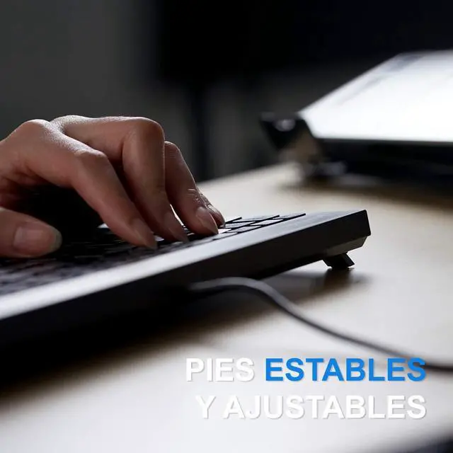 DISENO COMPACTO: Teclado delgado y ligero que ocupa menos espacio en el escritorio. Las dimensiones de este teclado pequeno son 27.6 x 13.8 x 1.4 cm; 380gr. y el cable es de alrededor 1.8 m. de largo. El teclado con configuracion en espanol, permite tipear facilmente las tildes y otros caracteres de la lengua espanola ^^