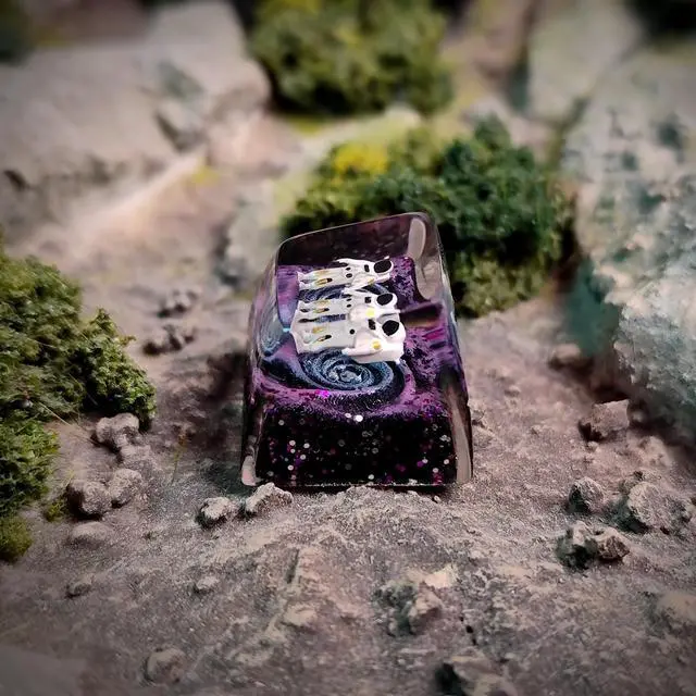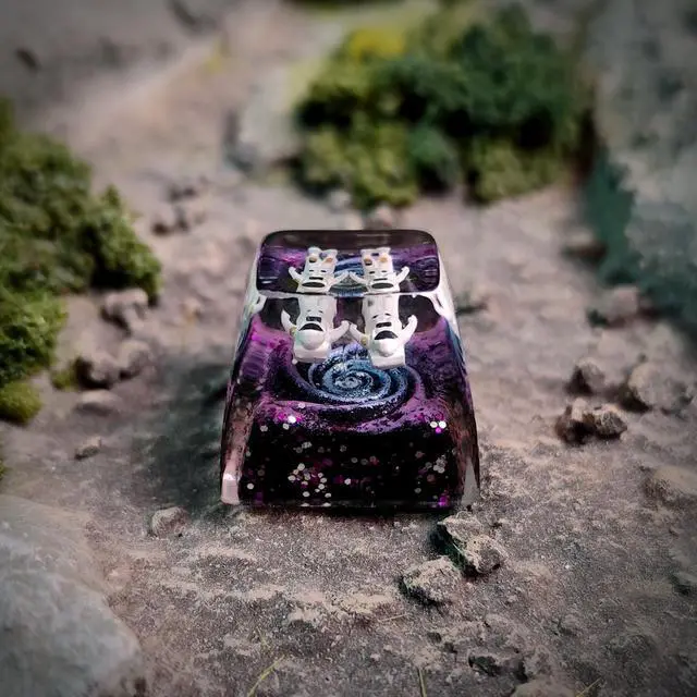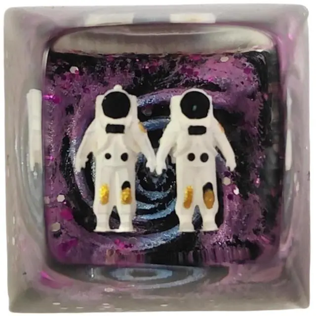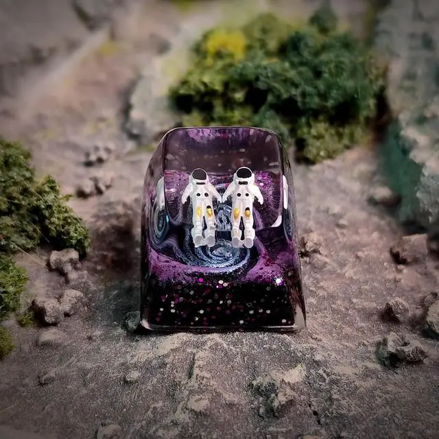 Step into a tiny universe every time you touch your keyboard. The Astronaut Galaxy Artisan Keycap Collection is handcrafted with layered resin techniques, creating a deep, multi-dimensional galaxy effect that shimmers with purple, blue, and cosmic glitter. Each piece features a miniature 3D astronaut carefully placed inside by handfloating weightlessly as if exploring a distant nebula. No two keycaps are ever the same, making each one a unique work of resin art. Designed for collectors, keyboard enthusiasts, and anyone who loves adding personality to their setup, this artisan keycap fits the R1 profile (ESC / Function Row) and is fully compatible with Cherry MX, Gateron, Kailh, Outemu, and most MX-style mechanical switches.