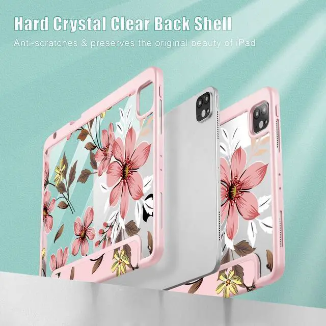 Mektron for iPad Pro 12.9 M2 2022 Case Compatible iPad Pro 12.9 inch 6th/ 5th/ 4th/ 3rd Gen Cover 2021 2020 2018 Tablet Case with Shockproof Clear Back Cover for 12.9-inch iPad Pro, Floral C293