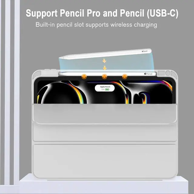 [Supports Pencil Pro and Pencil (USB-C)] This iPad Pro case fully supports Pencil Pro with a recessed side groove for magnetic charging and a magnetic clasp to keep your Pencil secure.