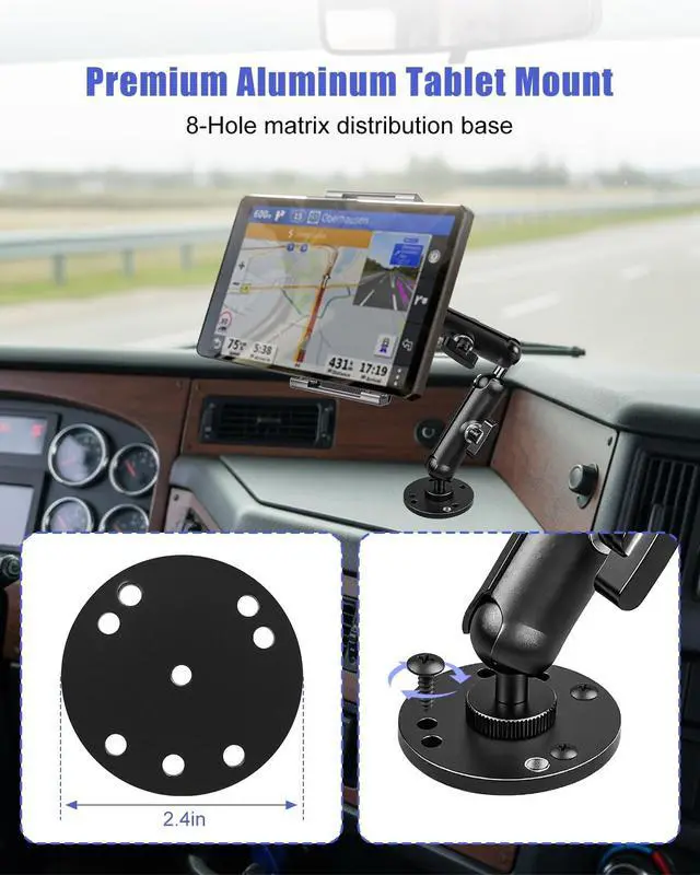Mounting Technology: 8-hole mounting pattern with reinforced screw locking systemDual-link arm design extends positioning range360-degree ball joints for complete viewing anglesSpring-loaded clamp with protective silicone contact pointsApplications: Commercial trucking and transportationMarine and recreational vehiclesIndustrial workshops and warehousesHealthcare and point-of-sale systemsFitness facilities and commercial kitchensPackage