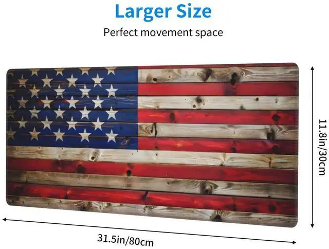 CANFLASHION American Flag Mouse Pad,Office Desk Mat 31.5"11.8",Large Gaming Mouse Pad with Wooden Design, XL Extended Waterproof Desk Pad for Computer with Non-Slip Rubber Base300 * 800 * 3mm