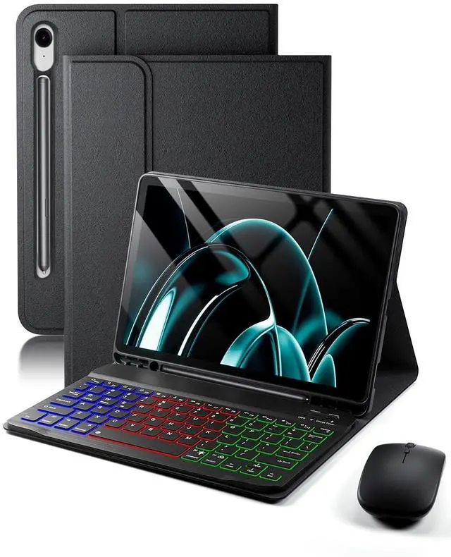 for Samsung Galaxy Tab S10 FE Plus / S10 FE+ 13.1 inch 2025 Case with Keyboard - Rainbow Backlit Keyboard Case - Built in Pencil Holder with Mouse - Black