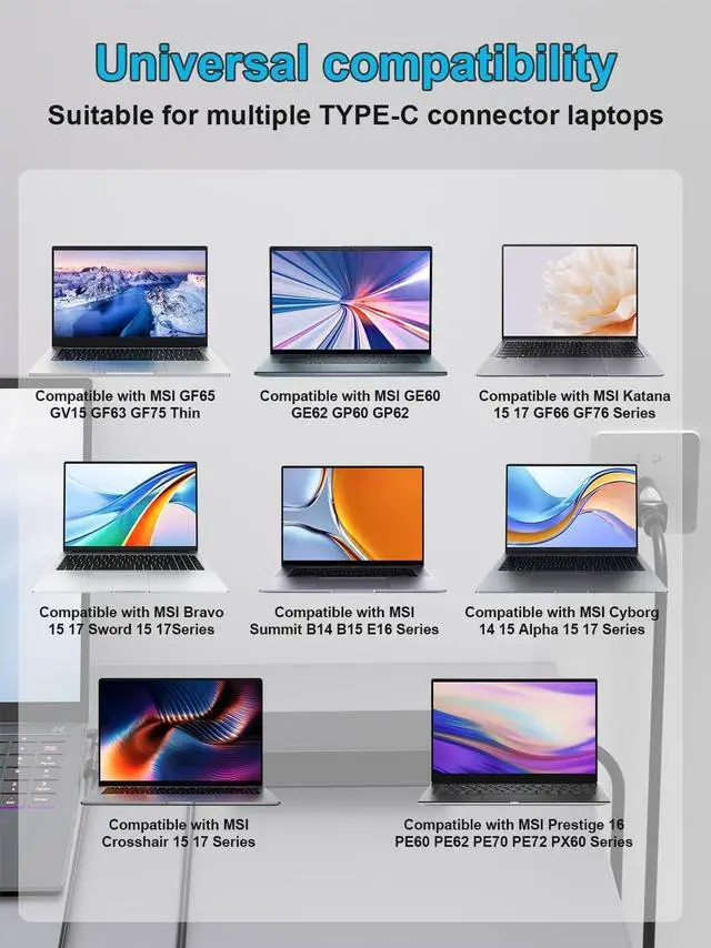 Power Jack Connector Type: 5.5 mm x 2.5 mm Round Tip. (It is not fit for Laptops devices requiring more than 180W) ^^ Stable Compatibility; Experience faster, more reliable charging with this Portable charger. Lightweight and compact size makes it easy to pack for business trips, vacations, or daily use at the office. Durable Construction and Made with heat-resistant materials for extended durability. The built-in chip automatically adjusts power based on your devices temperature and battery status. Less heat, safer charging, and a battery that lasts longer ^^