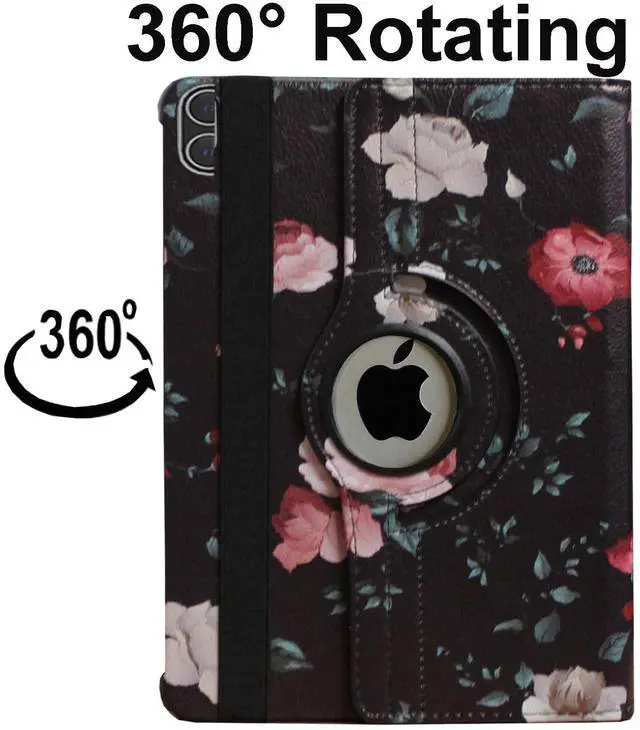 JYtrend Case for iPad Pro 12.9 6th 5th 4th 3rd Generation, Rotating Stand Smart Auto Wake Up/Sleep Cover Model A2436 A2764 A2437 A2378 A2379 A2461 A2229 A2069 A2232 A1876 A2014 A1895, Black Flower