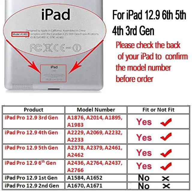 • Specially designed for 2022 iPad Pro 12.9 6th Generation, 2021 iPad Pro 12.9 5th Generation, 2020 iPad Pro 12.9 4th Generaion and 2018 iPad Pro 12.9 3rd Generation - including the following Models: A1876, A2014, A1895, A1983, A2229, A2069, A2232, A2233, A2378, A2379, A2461, A2462, A2436, A2764, A2437, A2766