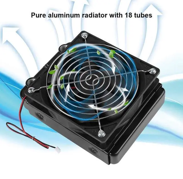 Strong heat Dissipation Capacity18-tube pure aluminum CPU water cooling radiator, super high heat dissipation capacity. Pure aluminum fins have good heat dissipation and black oxide paint improves thermal efficiency ^^ Lightweight and PortableThe CPU water cooling radiator has a light and compact design and is easy to carry. Easy to use, and practical. Effectively remove the heat from the circulating coolant, so as to achieve maximum heat dissipation during low airflow and high airflow ^^ Safe and EfficientThe CPU radiator adopts double metal protection, and the fan is equipped with a double-layer metal net to prevent foreign objects from getting involved and protect the fan from normal ^^ Wide ApplicabilitySuitable for computer CPU water cooling, industrial frequency conversion drive, laser head heat dissipation, air conditioning evaporator and industrial control cabinet heat dissipation ^^ Quality ServiceIf you have any questions about this product, you can contact us at any time.