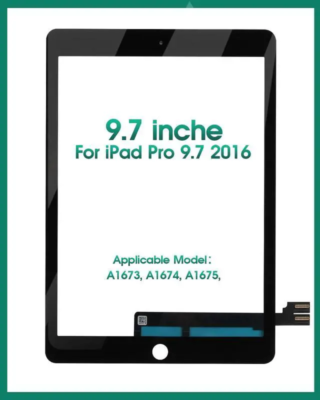 Black/WhiteSize: 9.7 inchCompatible For ipad pro 9.7, A1673 A1674 A1675What You Will Get: x 1 touch screen replacement ( lcd not include) x 1 pcs tempered glass screen protectorx 1 set of repair tools kitPS: Repair tools set doesn't fit all table/phone modelsAfter-sale service!!! Please email to our service team If you need further help for any problem, We will do our best to provide you with quality service.