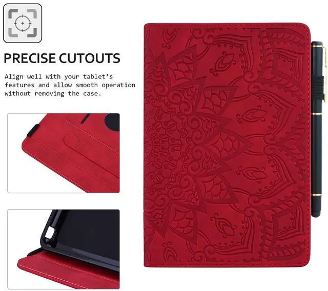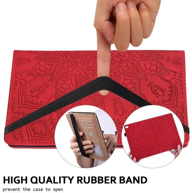 Features: Pretty mandala flower embossed surface, offers exquisite and attractive look for your tablet. Easy access to all features and controls (camera, charging port, volume button, etc) without removing the case. Elastic strap closure ensures cover securely closed, double fixing your device when fold the front cover backward for reading. Front-to-back protective cover case give a full protection for your tablet against dust, water, fingerprints, scratches, shocks and bumps. Interior with 2 card holders for carrying your ID/ credit cards/ business cards/ photos. Side with an elastic loop holder for stylus.