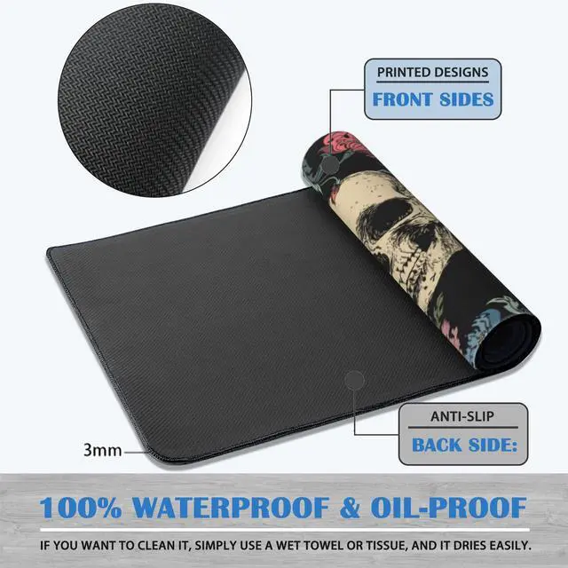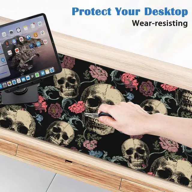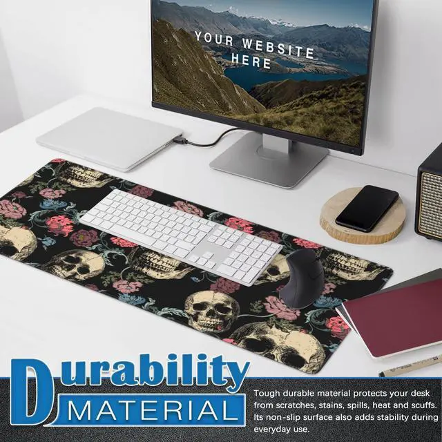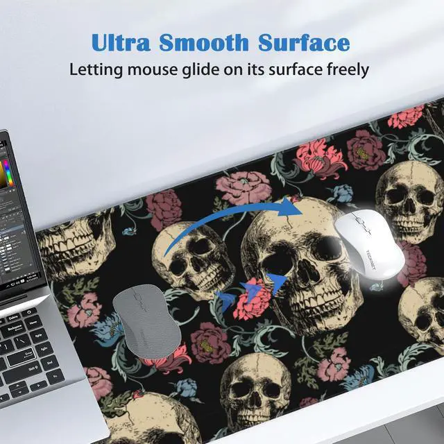 Mouse Pads,Skull Flowers Large Mouse Pad for Desk Non-Slip Rubber Base Mouse Pad with Stitched Edges,Keyboard Pad Mouse Mat for Computer,Work,Gaming,Desk Decor 31.5x15.7 in