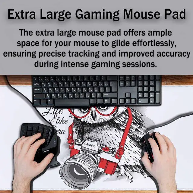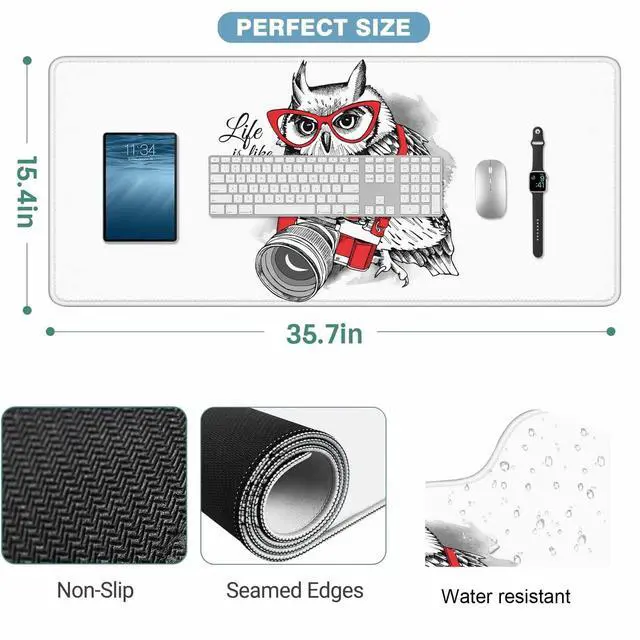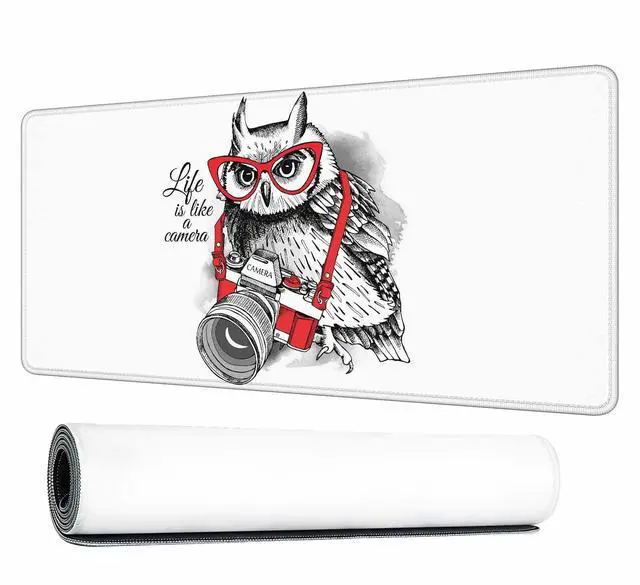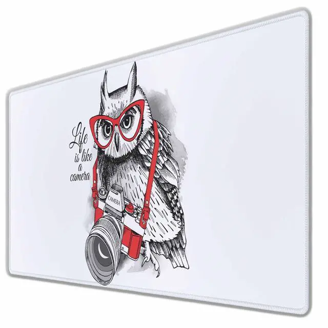 Y YIHANGBEST Owl in Red Glasses with A Camera Mouse Pad Keyboard Mat Large Gaming Mousepad for Desk,Office,Bed 35.4"X15.7"